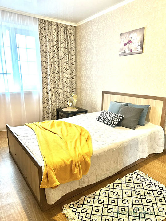 - Спальня: двуспальная кровать,рабочий стол, стул, шкаф-витрина.