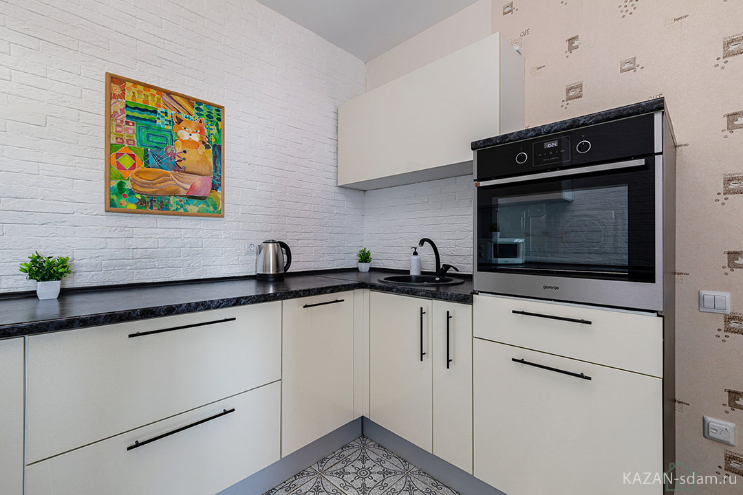 - Современная техника на кухне: микроволновка, плита, духовой шкаф, чайник — готовьте любимые блюда быстро и удобно.