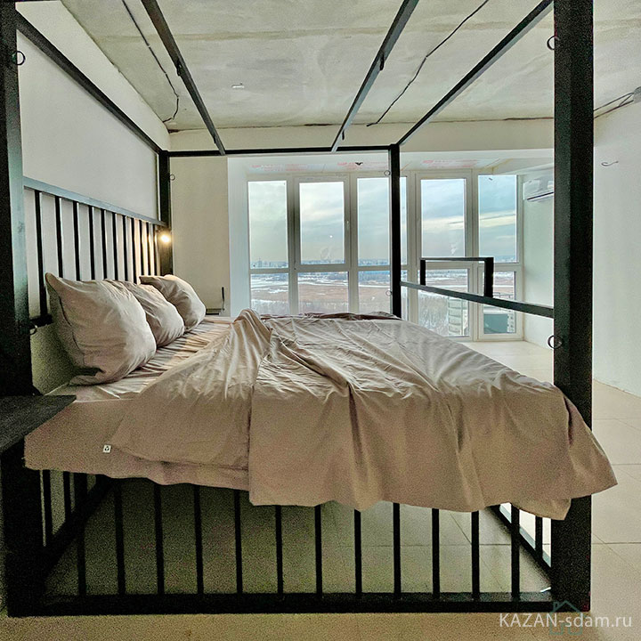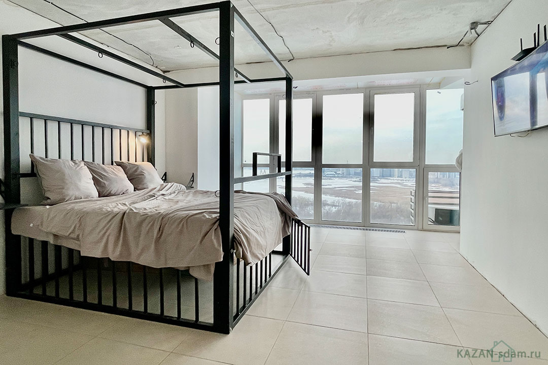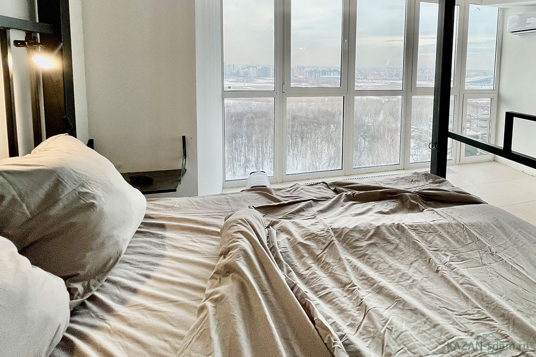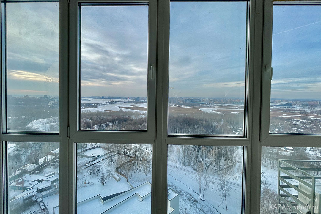- Панорамные окна с видом на город.