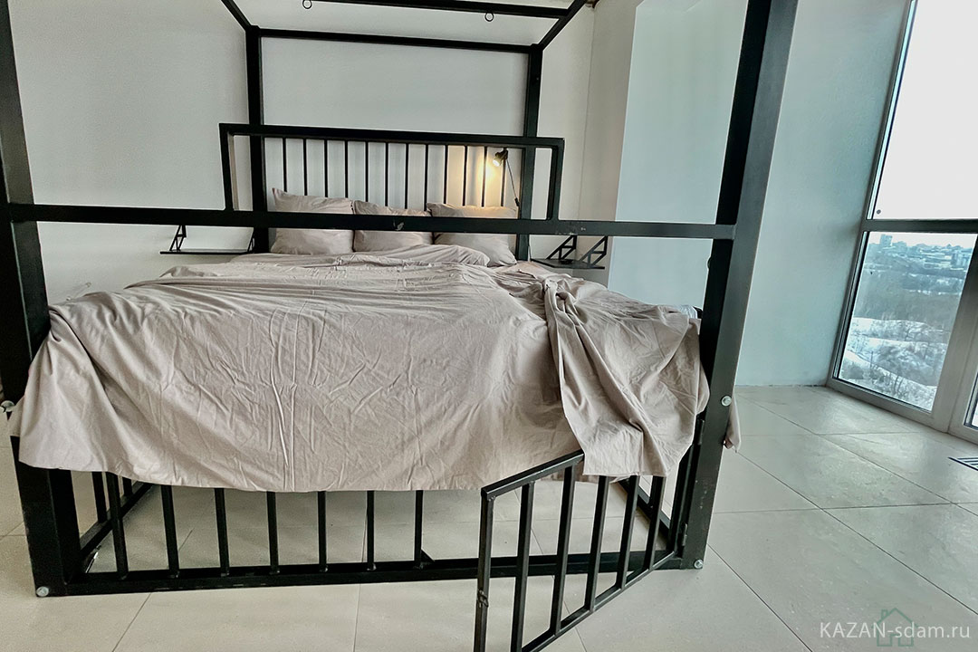 - Просторная двуспальная кровать с ортопедическим матрасом.