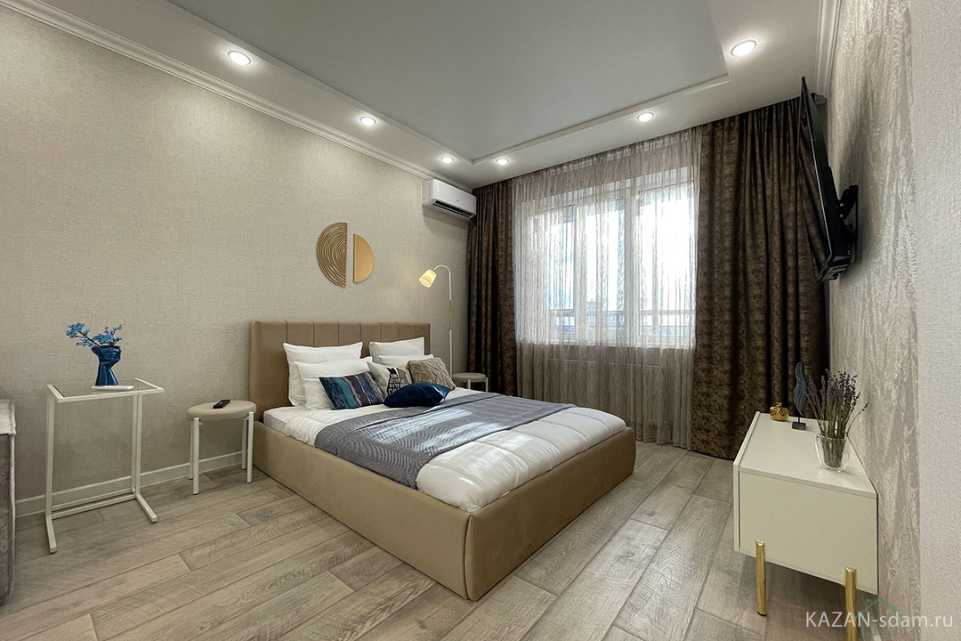Квартира на сутки в Кировском районе. Дизайнерский ремонт. Кондиционер, фен, водонагреватель. До 6 гостей (2+2+2). Самозаселение 24/7.