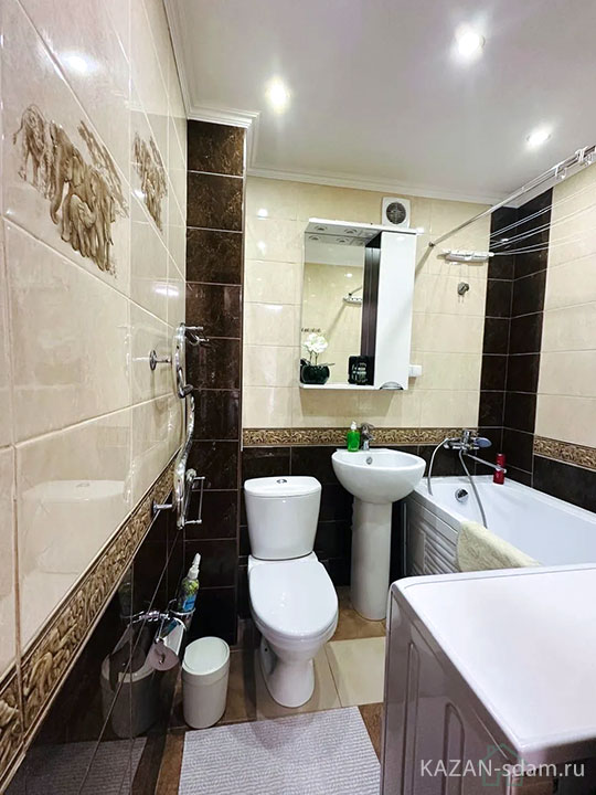 - Санузел: ванна/душ, зеркало-шкаф, унитаз, раковина.
